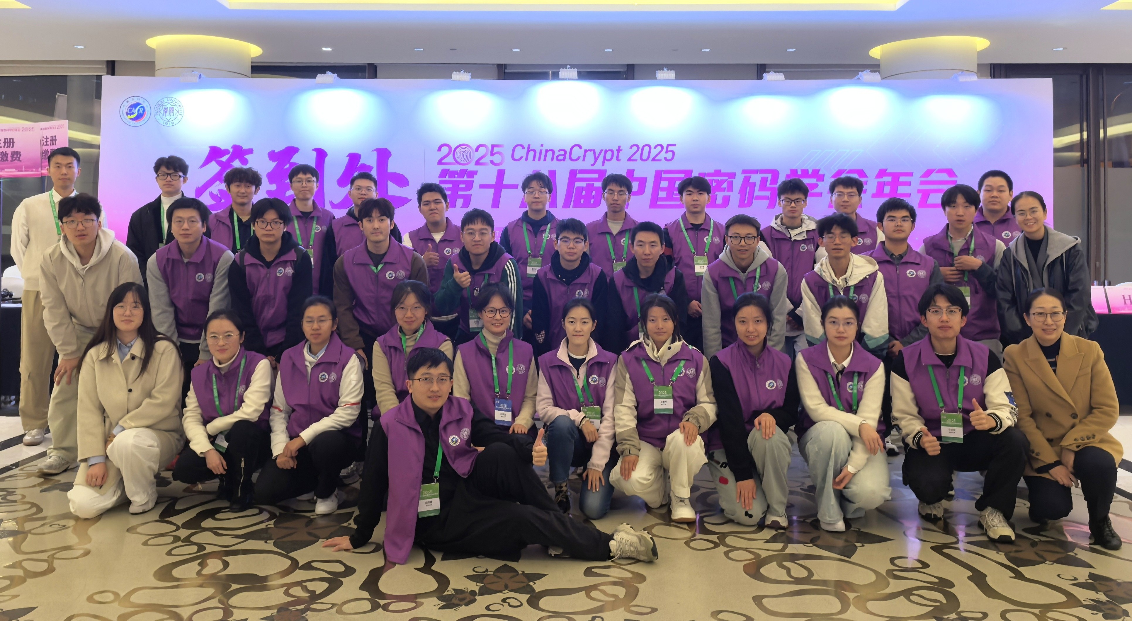 近日,第十八届中国密码学年会圆满落幕。本届年会注册人数、参会人数均突破1200人,创历史新高。在这场学术盛会背后,一群身着紫马甲的志愿者以高度的责任感、专业的服务和饱满的热情,全程投入、精准保障,成为点亮津门初冬最温暖的风景,赢得了与会领导、专家和师生的一致赞扬。